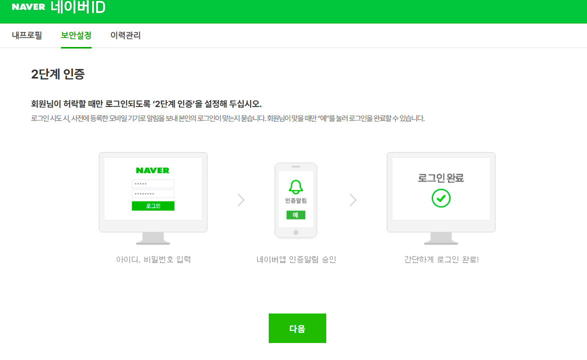 타인이 계정에 로그인하지 못하게 막는 기능입니다.네이버에서는 이를 ‘본인확인 보안 강화 기능’으로 제공하고 있습니다.