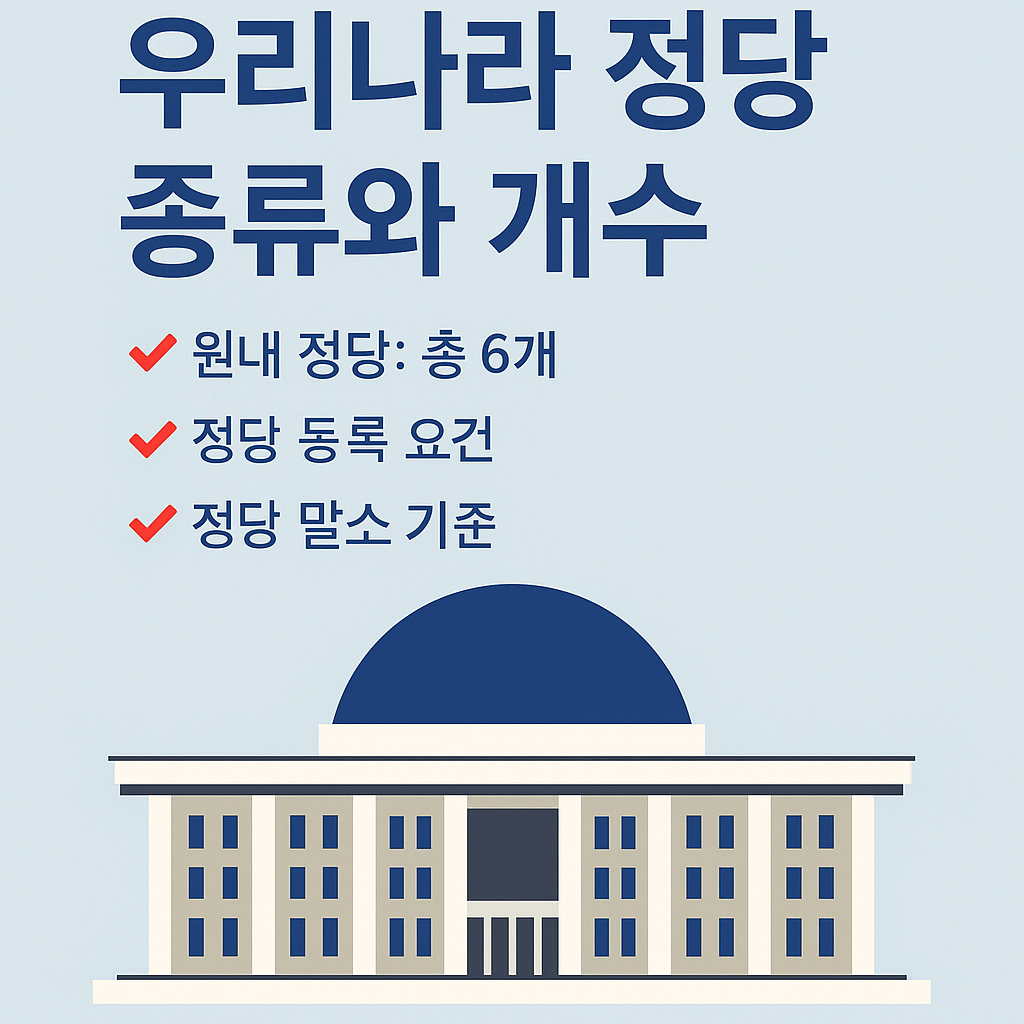 정당(政黨)은 국민의 정치적 의사를 결집해 국정에 참여하는 정치 조직입니다. 그런데 정작 “정당이 몇 개인지”, “어떤 기준으로 등록되고 말소되는지” 정확히 아는 사람은 많지 않죠. 오늘은 중앙선거관리위원회 공식자료를 바탕으로 우리나라 정당의 종류, 개수, 등록요건과 말소기준까지 한 번에 정리해드리겠습니다.
