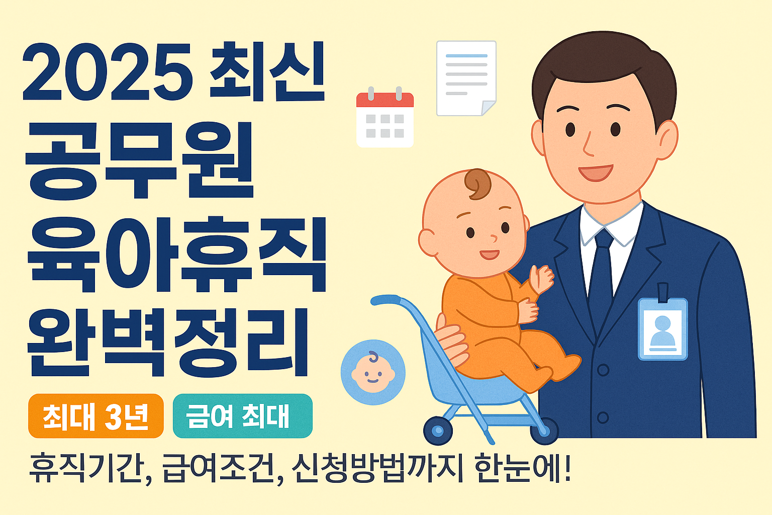 공무원 육아휴직은 일과 육아를 병행하는 공무원들을 위한 필수적인 복지제도입니다. 하지만 급여 기준과 기간 등 구체적인 사항을 모르면 활용에 어려움이 있습니다. 이번 글에서는 최신 「국가공무원법」을 기준으로 육아휴직의 모든 것을 정확히 정리했습니다. 이 글을 통해 육아휴직의 혜택을 충분히 이해하고 적극적으로 활용하시길 바랍니다.