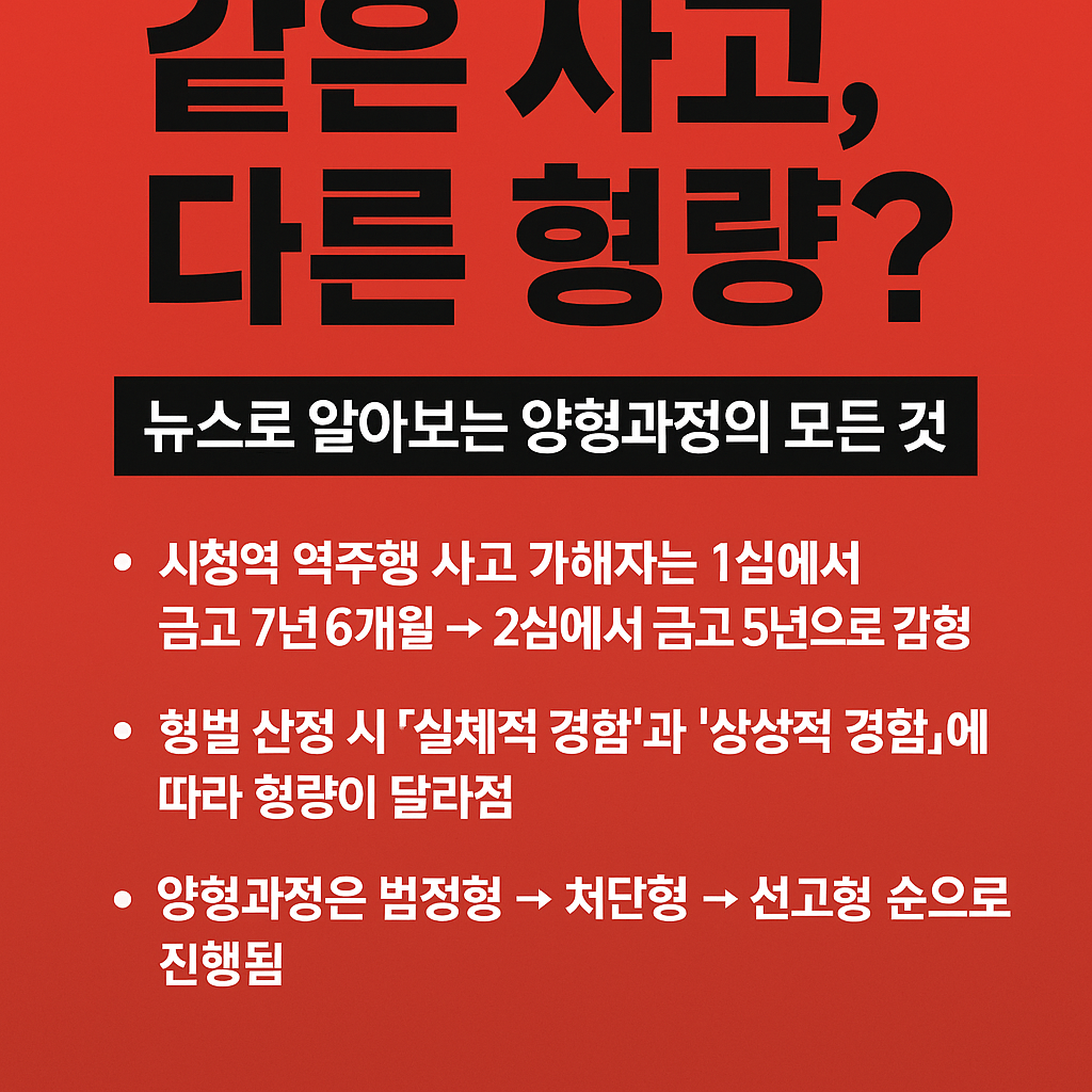 ‘이렇게 큰 사고인데 왜 감형이 된 걸까?’라는 의문, 바로 여기서 우리가 알아야 할 개념이 형벌이 정해지는 구조, 즉 ‘양형과정’입니다.