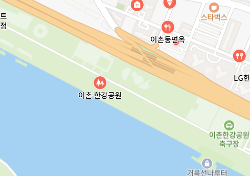 팁: 편의시설(화장실·매점) 위치 미리 파악. 이촌역에서 내려서 중앙 터널을 통해 들어가야함. 배달은 공원 안까지 못들어오므로 터널쪽으로 나가서 받아야함.