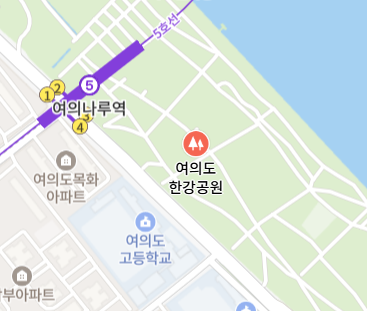 팁: 편의시설(화장실·매점) 위치 미리 파악. 이촌역에서 내려서 중앙 터널을 통해 들어가야함. 배달은 공원 안까지 못들어오므로 터널쪽으로 나가서 받아야함.