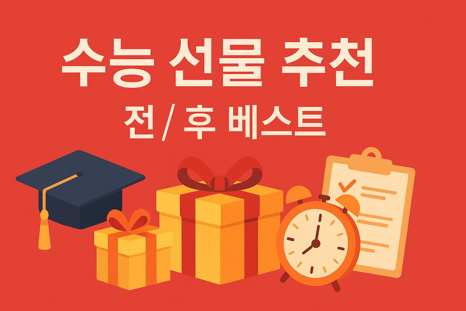 지금까지 수능 선물 추천을 수능 전 선물과 수능 후 선물로 나눠 살펴보았습니다. 시험 전에는 실전 도움, 시험 후에는 회복과 동기부여에 집중하면 만족도가 높아집니다. 상황과 취향을 이해한 작은 배려가 최고의 선물이 됩니다.