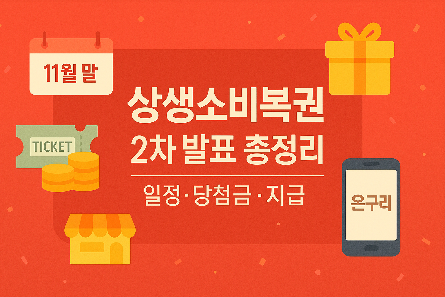 상생소비복권 2차 당첨 발표 일정 상생소비복권 1차 발표가 끝났습니다. 본 글은 상생소비복권이란 무엇인지, 1차 발표·지급 그리고 2차 발표·당첨금·지급 일정을 날짜 중심으로 정리했습니다.
