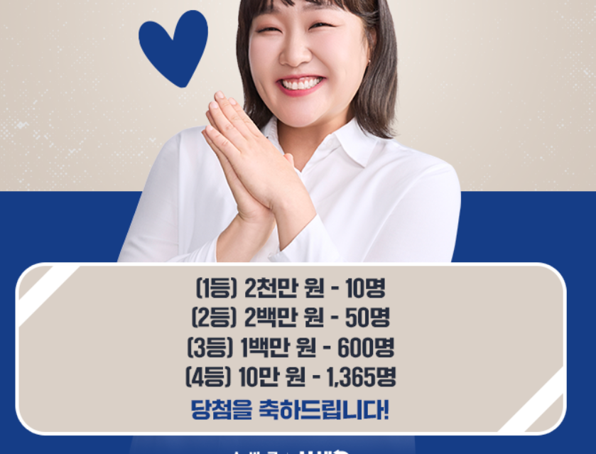 구조 : 총 20억/5,000명(1등 20명 2,000만 원, 이외 등위 확대).* 구체 날짜·등위별 인원은 최종 공지에서 확정됩니다. 발표 직전 사칭 사이트·피싱 문자를 주의하세요.