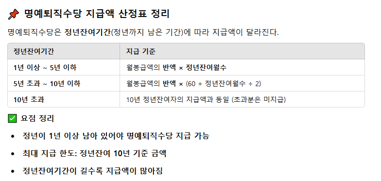 - 명예퇴직수당이 없음 → 경제적 보상 부족